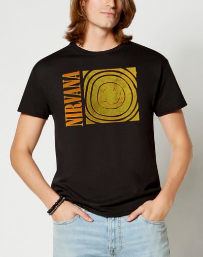 Everyone will know what you're listening to when you show off your taste in music with our officially licensed Nirvana Layered Logo T Shirt! Suit up in this stylish tee and you'll always be showing your fandom. Officially licensed Exclusively at Spencer's Crew neck Short sleeves Material: Cotton Care: Machine wash; tumble dry low Imported This tee is Unisex Sizing only For a fitted look, order one size smaller than your regular size.