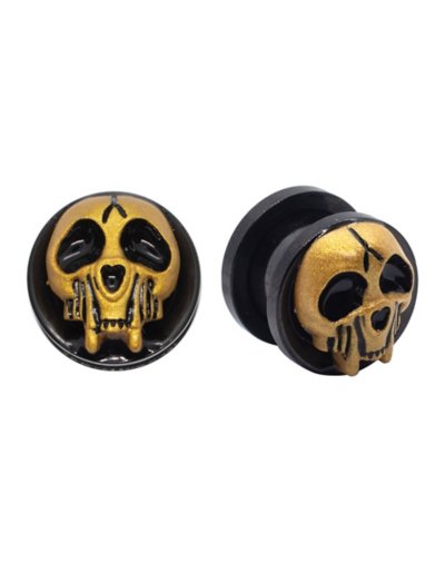 Buy Black and Gold Cat Skull Plugs - 00 Gauge for $14.99 at @ Spencersonline.com