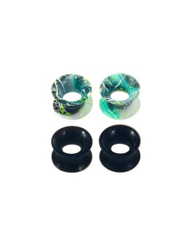 Multi-Pack Black and Green Splatter Tunnel Plugs - 2 Pair