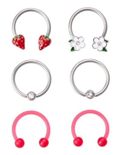 Buy Multi-Pack CZ Strawberry and Flowers Septum Rings 6 Pack - Gauge for $19.99 at @ Spencersonline.com