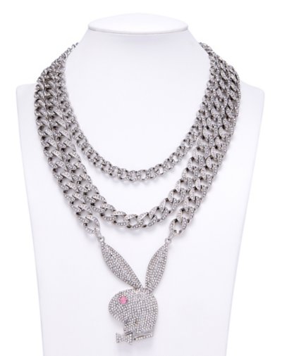 Buy CZ Playboy Bunny Triple Row Figaro Chain Necklace for $59.99 at @ Spencersonline.com