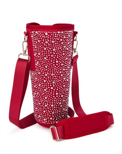 Stay hydrated in style with this fun and colorful red rhinestone tumbler sling bag! This convenient bag will hold your water bottle or tumbler without weighing you down. Exclusively at Spencer's Dimensions: 9.5" H x 6.5" W x 1.5" D Material: Polyester Capacity: 3.7 lbs. Adjustable Velcro Closure Spot clean Imported.