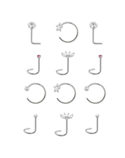 Buy Multi-Pack CZ Screw Horseshoe and L-Bend Nose Rings 12 Pack - Gauge for $29.99 at @ Spencersonline.com