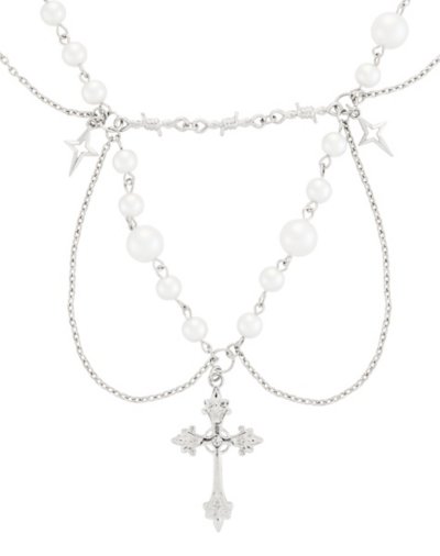 Buy Layered Chain and Pearl Cross Choker Necklace for $19.99 at @ Spencersonline.com