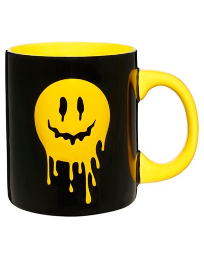 Like your drinks hot enough to melt your face? This drippy smiley face mug belongs in your drinkware collection. Featuring contrasting bright yellow and black hues with a dripping smiley face graphic, this oz. mug is bound to become a fast favorite. Dimensions: 4.3"H x 5.7"W x 4.13"D Capacity: oz. Material: Ceramic Care: Hand wash Imported.