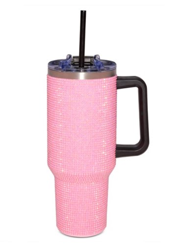 Look pretty in pink while staying hydrated with this Pink Rhinestone Travel Tumbler with Straw Add this travel tumbler to your drinkware collection and you'll always be prepared to enjoy your favorite beverage in style. Exclusively at Spencer's Dimensions: 10.5" H x 4" W x 4" D Capacity: oz. Material: Stainless steel Care: Gently hand wash only Imported.