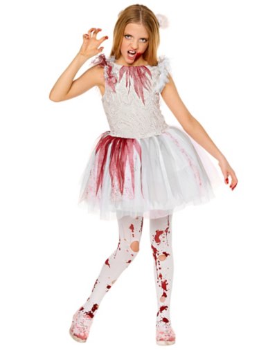 Abigail is not your average ballerina, but her moves are certainly killer. Add a horrifying twist to your ballerina look with this officially licensed Kids Abigail Costume. With the included blood-stained costume and tights, you'll become an absolute monster this Halloween! Officially licensed Includes: Dress Headband Tights Crewneck Sleeveless Pullover style Material: Polyester Care: Spot clean Imported Note: Shoes sold separately.