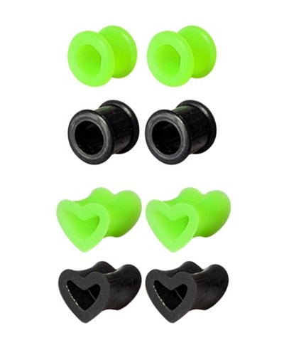 Buy Multi-Pack Green and Black Heart Silicone Tunnels - 4 Pairs for $24.99 at @ Spencersonline.com