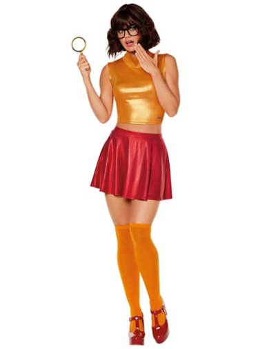This costume is sure to have you saying Jinkies! Get ready to party with the whole gang this Halloween in this officially licensed Adult Sassy Velma Costume. This groovy take on Velma from Scooby-Doo includes a metallic version of her skirt and shirt combo so there will be no mistaking which member of Mystery Inc. you're representing. Officially licensed Includes: Shirt Skirt Knee high socks Glasses Crewneck Sleeveless Pull over style Material: Polyester, spandex Care: Spot clean Imported Note: Shoes and other accessories not included.