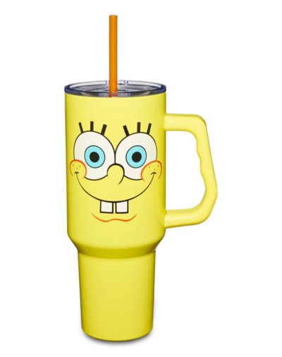 Ahoy! Stay hydrated with your favorite talking sponge when you sport this officially licensed SpongeBob SquarePants Cup with Straw! Brandishing SpongeBob's iconic grin and cheerful shades of yellow, this cup is perfect for anyone wishing they could live in a pineapple under the sea. Officially licensed Includes: Cup Straw Lid Dimensions: 10.6" H x 2.9" W Capacity: oz. Snap closure Material: Stainless steel Care: Hand wash Imported.