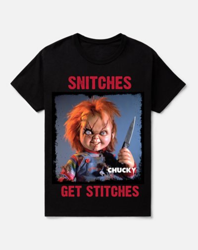 Buy Chucky Snitches Get Stitches T Shirt for $19.99 at @ Spencersonline.com