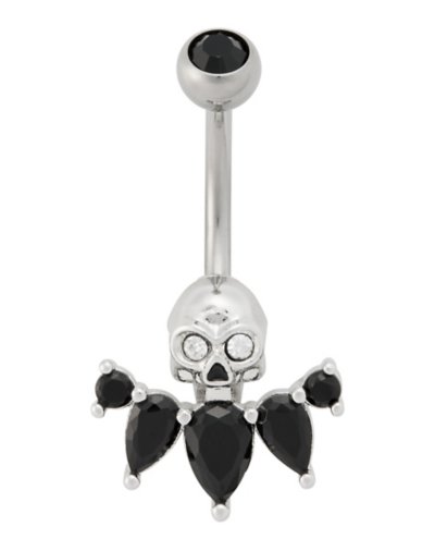 Buy Black and Silver Titanium CZ Skull Belly Ring - Gauge for $22.99 at @ Spencersonline.com