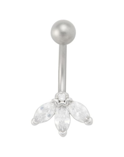 Includes: 1 Belly ring Piercing type: Belly Material: G23 Titanium, brass Plating: Silver plated Gauge: Gauge / 1.6mm Length: 3/8" / 10mm Stone type: Cubic zirconia Stone color: Clear Threadless closure Jewelry care: Clean with antibacterial soap and warm water Piercing care: Clean withH2Ocean Aftercare Spray(sold separately) or saline solution Imported Note: Do not use any harsh, alcohol-based chemicals as this may cause tarnishing Note: Do not over-thread or apply excess pressure when adding/removing beads as breakage could occur Wear in healed piercings only. If irritation occurs, remove immediately This is a decorative item and should not be worn to sleep.