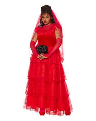 Befriend some ghosts this Halloween when you get dressed up in this officially licensed Adult Lydia Deetz Plus Size Costume. This costume will have you looking just like this fan favorite character from the movieBeetlejuicewith the included red dress, and veil. If you love anything paranormal just like Lydia, you'll love wearing this costume for Halloween. Officially licensed Includes: Dress Veil Long sleeves Pull down closure Material: Polyester Care: Hand wash Imported Note: Shoes and accessory sold separately.