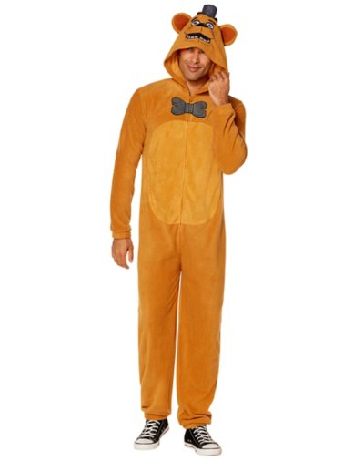 Will you survive the night? Suit up as everyone's favorite killer animatronic with this officially licensedAdult Freddy Fazbear Jumpsuit Costume from Five Nights at Freddy's. Officially licensed Includes: Jumpsuit Vest Gloves Mask Long sleeves Material: Polyester, plastic Care: Spot clean Imported Note: Shoes sold separately Shoes and accessories sold separately.