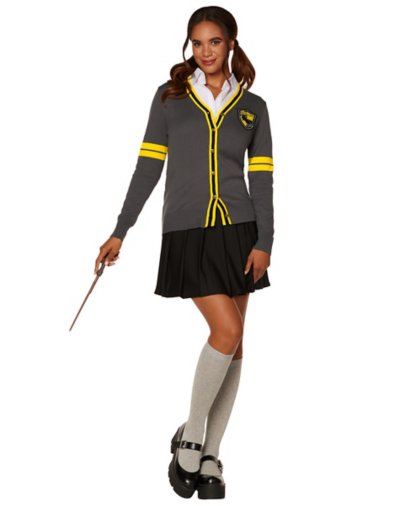 True and unafraid of toil? Must be a Hufflepuff! Complete any Harry Potter costume with this officially licensedAdult Hufflepuff House Sweater. This authentic house sweater features a v-neck design, button-up closure, and a Hufflepuff house crest patch! Officially licensed Includes: Sweater V-neck Long sleeves Button closure Material: Cotton, acrylic Care: Spot clean Imported Note: Pants, shoes, and accessories sold separately.