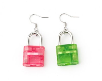 Pink and Green Lock Dangle Earrings