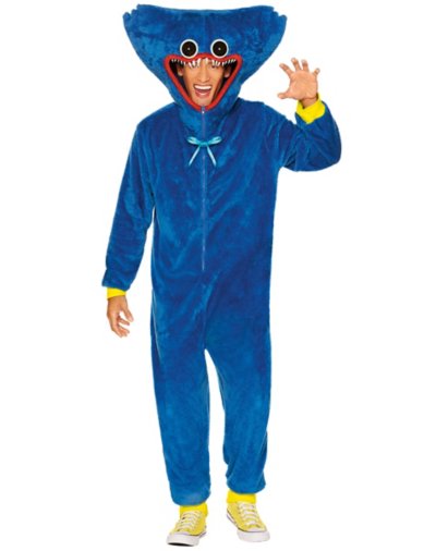 Brave a night at the abandoned toy factory this Halloween when you dress up as Huggy Wuggy! Fans of Poppy Playtime will recognize you in this blue Huggy Wuggy jumpsuit. This officially licensed costume features plush blue material with yellow wrist and ankle cuffs. Your face appears inside of Huggy Wuggy's gaping mouth for maximum creepiness! Officially licensed Includes: Jumpsuit Long sleeves Zipper closure Material: Polyester Care: Spot clean Imported.