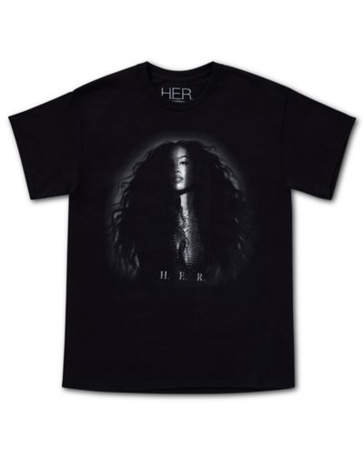 Featuring H.E.R. with goddess-like tresses, this t shirt is bound to turn heads. Add this goes-with-everything black graphic tee to your wardrobe to show your love for the award-winning musician. Officially licensed Crewneck Short sleeves Tagless Material: Cotton Care: Machine wash; tumble dry low Imported Regular fit Note: This tee is in Unisex Sizing only For a fitted look, order one size smaller than your normal size.