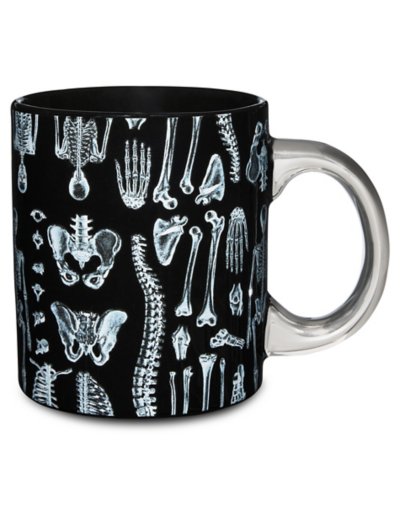 Sip in style with this Anatomy Skeleton Glass Coffee Mug, designed to showcase all the most important bones in the human body. Add it to your drinkware collection and spice up your morning coffee routine! Exclusively at Spencer's Dimensions: 4.3" H x 3.9" W Capacity: 20 oz. Material: Glass Care: Hand wash (not dishwaher safe) Imported Note: This product is NOT microwave safe.