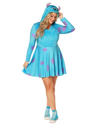 Look ready to live it up alongside Boo and Mike when you wear this Monsters Inc. Sulley dress costume! This blue spotted dress has an adorable hood that's sure to make everyone want a closer look. Officially licensed Includes: Dress with attached hoods Long sleeves Material: Polyester, spandex Care: Spot clean Imported.