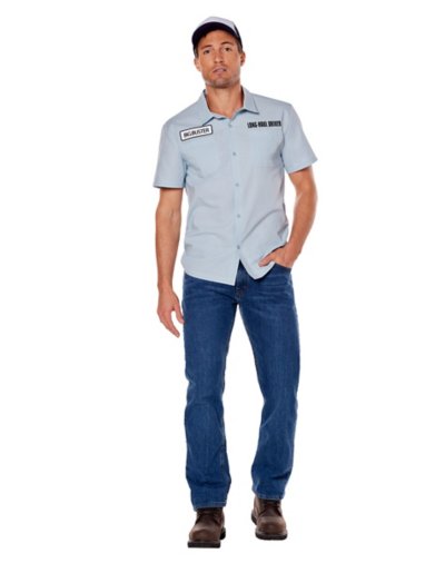 Oversized load coming through! If youre hoping to bring home the funniest costume award this Halloween, look no further than the Jacks Trucking Work Shirt. Put on this hilarious top and get ready to crack up your friends! Crewneck Short sleeves Button closure Material: Cotton Care: Spot clean Imported.
