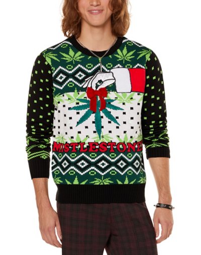 Time to light up for the holidays! When you wear this Light-Up Mistlestoned Christmas Sweater to the next holiday party everyone will know how you're ready to celebrate. Any fan of the ganja will love wearing this cool Christmas sweater for the holidays. Light-up design cycles through solid, blinking, and strobing lights Crewneck Long sleeves Pullover style Batteries Required: 2 AA (not included) Material: Cotton, acrylic Care: Spot clean Imported This shirt is Unisex Sizing only For a fitted look, order one size smaller than your normal size.