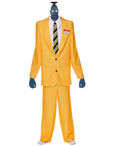 You'll be Beetlejuice's right hand man in the afterlife with this officially licensed Adult Shrinker Bob Costume from Beetlejuice Beetlejuice! This unique costume ensemble features a latex shrunken head prop that's designed to sit atop wearer's head with an elastic strap, a jacket with an attached see-through dickie, pants, and an inflatable shoulder piece for a lifted shoulder look! Officially licensed Includes: Latex head prop Jacket with attached dickie Inflatable shoulder piece Pants Long sleeves Material: Polyester, latex Button closure Care: Spot clean Imported Note: Shoes and gloves sold separately WARNING: Do not use if allergic to latex.