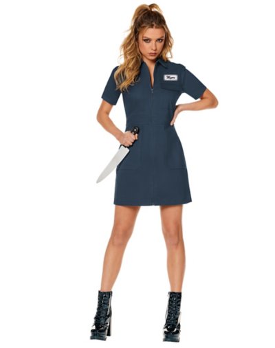 If theres one thing that Haddonfield residents know, its that you NEVER mess with the Boogeyman. Show love for one of the most legendary slashers when you get this officially licensed Michael Myers Costume. Including a dress and a knife prop, this costume will transform you into Michael in an instant! Officially licensed Includes: Dress Knife Crewneck Short sleeves Zipper closure Material: Cotton, spandex, plastic Care: Spot clean Imported Note: Shoes and mask sold separately.