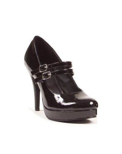 A costume staple, theMaryjane Double Strap Heel will complete your costume needs. These shiny black heels feature a cute double strap for extra support while dancing or trick or treating.Black Maryjane Double Strap Heel includes: Shoes Materials:Polyurethane.