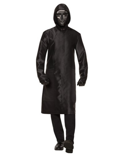 Keep your identity hidden and the game under control as the Front Man this Halloween. With this officially licensed Front Man Costume on you'll look just like your favorite character from Squid Game. Featuring an alltrench coat, gloves, and ahalf mask to complete the look, you'll fit right in with any Squid Game group look with this costume on this Halloween. Officially licensed Includes: Jacket Gloves Half mask Sleeveless Velcro closure Material: Polyester Care: Spot clean Imported.