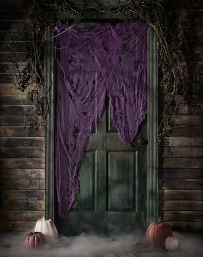 Add some wicked and distressed decor to any home this Halloween with thisFreaky Fabric. This purple fabric features a distressed and tattered look that's perfect for any creepy haunted house setting. Dimensions: 117.5" H x 28.8" W Material: Fabric Care: Spot clean Imported.