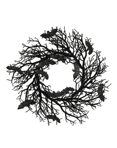 The bats are noir and theyre hanging on your door! Theres nothing more welcoming than a GothicBat Wreath on your front door this Halloween. Dimensions: 22 H x 4 W x 22 D Material: Plastic, Iron Care: Spot clean Imported.