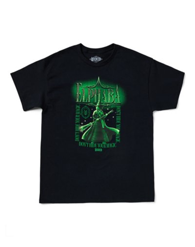 Embrace the magic of Elphaba in this black Wicked graphic tee. Featuring Cynthia Erivo and surrounded by the text, "Don't hide your magic," this t shirt belongs in every Wicked fan's wardrobe. Officially licensed Crewneck Short sleeves Material: Cotton Care: Machine wash; tumble dry low Imported This shirt is Unisex Sizing only For a fitted look, order one size smaller than your normal size.