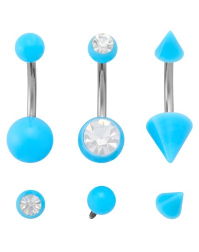 Kayla Malecc Multi-Pack Titanium Blue Belly Rings with Blue Ends and E