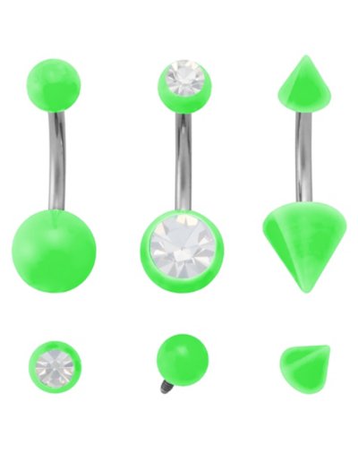 Kayla Malecc Multi-Pack Titanium Neon Green Belly Rings with Green End