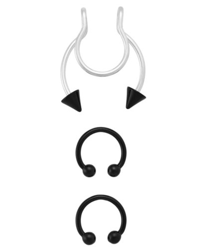 Introducing the Spencers x Kayla Malecc exclusive body jewelry collection! Mix and match these titanium pieces with neon accents for the ultimate glow-up. Exclusively at Spencer's Includes: 1 Fake septum ring 2 Horseshoe rings Piercing Type: Nose Material: G23 Titanium One size fits most Jewelry Care: Clean with antibacterial soap and warm water Piercing Care: Clean withH2Ocean Aftercare Spray(sold separately) or saline solution Imported Note: Do not use any harsh, alcohol-based chemicals as this may cause tarnishing Do not over-thread or apply excess pressure when ad.
