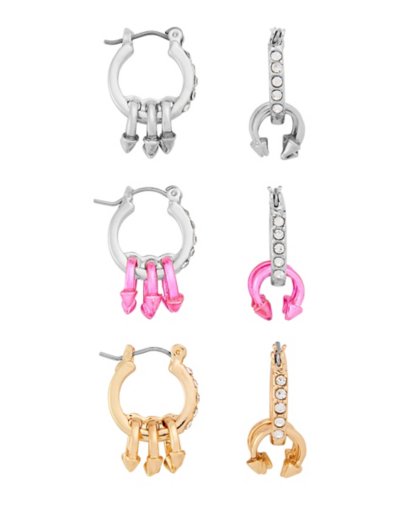 Exclusively at Spencer's Includes: 3 Hinge hoops Piercing type: Ear Material: Steel, zinc, glass Hinge closure Jewelry care: Wipe clean or useSpencer's Jewelry Wipes Piercing care: Clean withH2Ocean Aftercare Spray(sold separately) or saline solution Imported Note: Do not use any harsh, alcohol-based chemicals as this may cause tarnishing Wear in healed piercings only. If irritation occurs, remove immediately This is a decorative item and should not be worn to sleep.