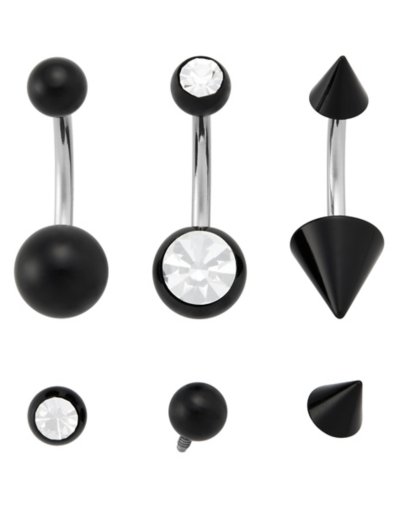 Buy Kayla Malecc Multi-Pack Titanium Black Belly Rings with Black Ends and for $19.99 at @ Spencersonline.com