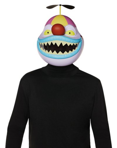 Halloween is the time for clowning around. This officially licensed Nightmare Before Christmas Clown Half Mask features an attachable spinning propeller that will carry you to your dreams- or through your nightmares! Officially licensed Dimensions: About 15" H X 15" W X 6" D Material: Plastic Care: Spot clean Imported One size fits most.