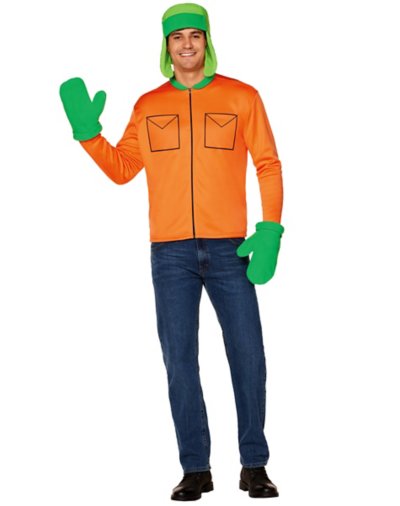 Celebrate Halloween dressed as one of your favorite South Park boys with this officially licensed Kyle Costume Kit. You'll look right out of an episode of South Park in this costume that includes an orange shirt made to look like Kyle's jacket, Kyle's green hat, and matching green gloves. Group up with some friends to create the ultimate South Park group costume this Halloween. Officially licensed Includes: Shirt Gloves Hat Long sleeves Zipper closure Material: Polyester Care: Machine Wash Cold. Do Not Bleach. Line Dry. Cool Iron When needed. Suitable for Dry Cleaning. Imported.