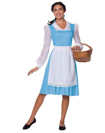 Becoming a Disney Princess is everyones dream. Make it a reality when you wear this officially licensed Belle Blue Dress Costume. This Beauty and the Beast-inspired outfit also includes an apron and a blue bow, transforming you into the legendary character with ease. Officially licensed Includes: Dress Apron Bow V-neck Long sleeves Pullover style Material: Polyester Care: Spot clean Imported Note: Shoes sold separately.