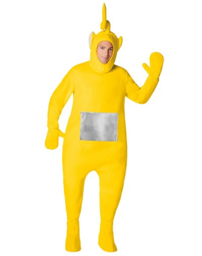 Put on this officially licensed Laa-Laa Teletubbies Costume and get ready for the best Halloween yet! This costume includes a Laa-Laa jumpsuit, a hood, and gloves, giving you everything you need to get into character. Officially licensed Includes: Jumpsuit Hood Gloves Long sleeves Zipper closure Material: Polyester Care: Spot clean Imported.