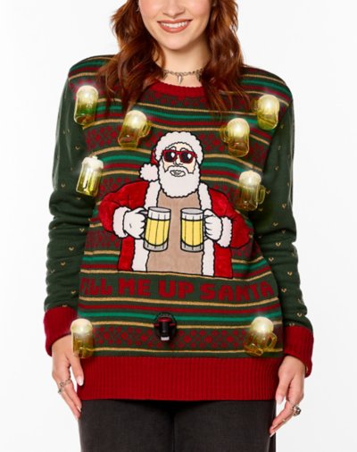 Buy Light-Up Fill Me Up Santa Beverage Dispenser Christmas Sweater for $34.99 at @ Spencersonline.com