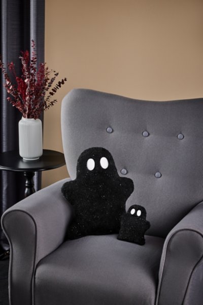 Get your home ready for some haunting style when you put out thisghost and baby pillow set! These adorable pillows are the perfect fun ghostly decor to set just the right mood. Includes: 2 Pillows Dimensions: 15" H x 13.5" W and 6"H x 5.5" Material: Polyester Care: Spot clean Imported.