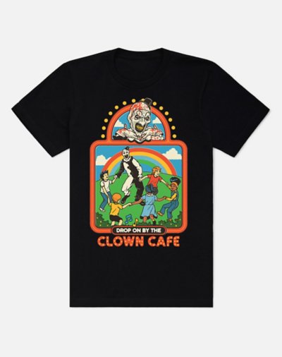 Head on down to the Clown Caf. Trust us, it's killer! Showcase your love for horror movies and embrace your hilarious sense of humor with this Terrifier-inspired t-shirt. Featuring the stunning artwork of Steven Rhodes, this tee is a must-have for any slasher-master. Officially licensed Crewneck Short sleeves Tagless Material: Cotton Care: Machine wash; tumble dry low Imported This shirt is Unisex Sizing only For a fitted look, order one size smaller than your normal size.