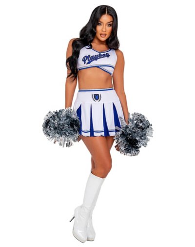 Show off your spirit for Playboy this Halloween when you wear this officially licensed Playboy Cheer Squad Costume. This sexy Playboy costume comes included with everything you need to put on the perfect Playboy halftime performance! Grab your pompoms and get ready to show your team spirit! Officially licensed Includes: Top Skirt Pompoms Sleeveless Material: Polyester Care: Hand wash Imported Note: Shoes sold separately.