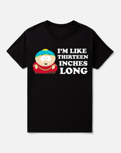 Size matters. Just ask Cartman. Celebrate your favorite comedy series and elevate your wardrobe when you rock this officially licensed South Park-inspired t-shirt. Officially licensed Crewneck Short sleeves Tagless Material: Cotton Care: Machine wash; tumble dry low Imported This shirt is Unisex Sizing only For a fitted look, order one size smaller than your normal size.