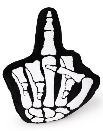 Buy Black Skeleton Middle Finger Pillow for $26.99 at @ Spencersonline.com