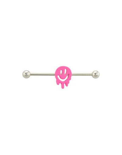 Buy Pink Drip Smiley Face Industrial Barbell - Gauge for $19.99 at @ Spencersonline.com